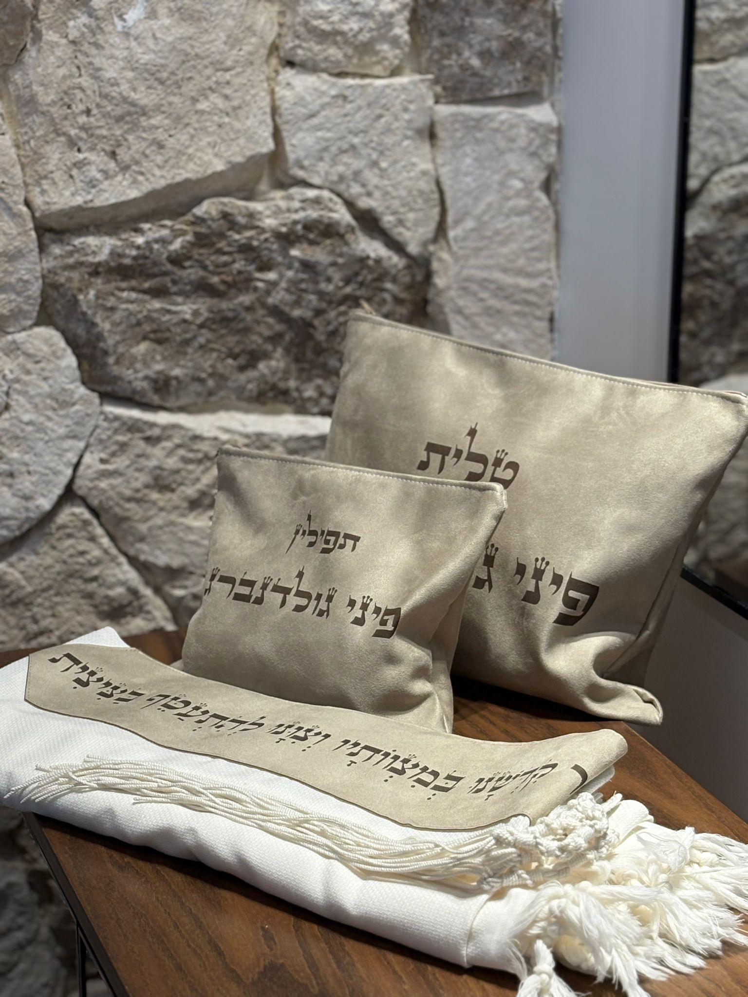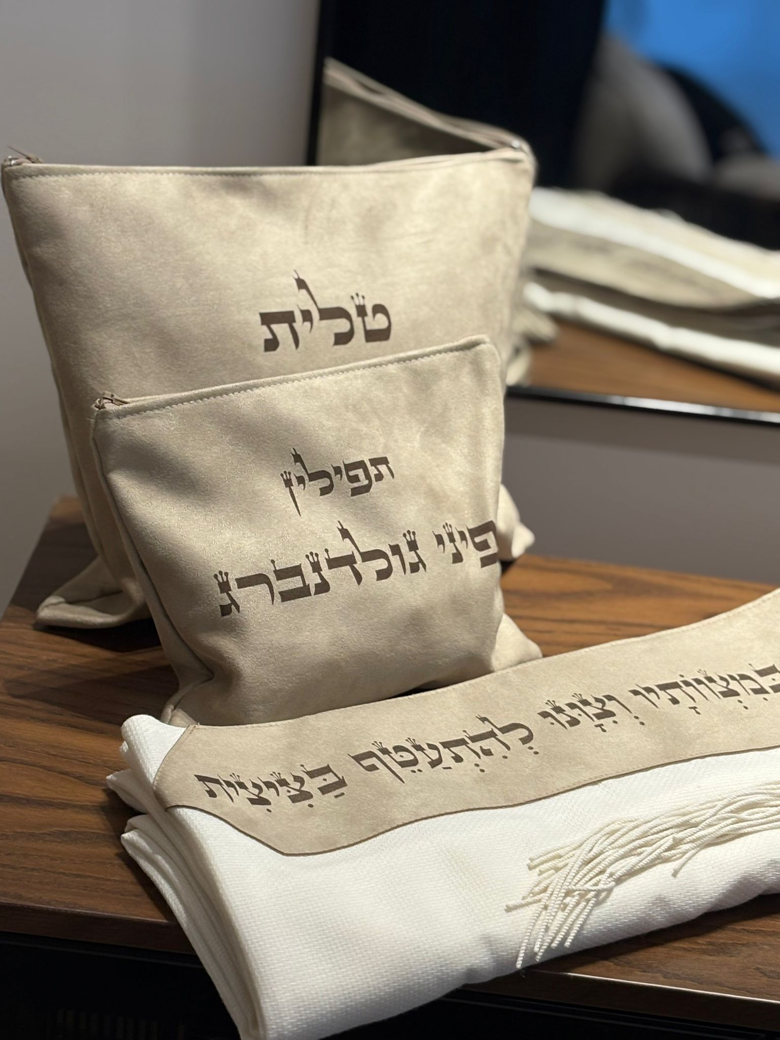 כיסוי טלית ותפילין צבע בז׳ בחיתוך לייזר במכונה הכי מתקדמת שיש ,
